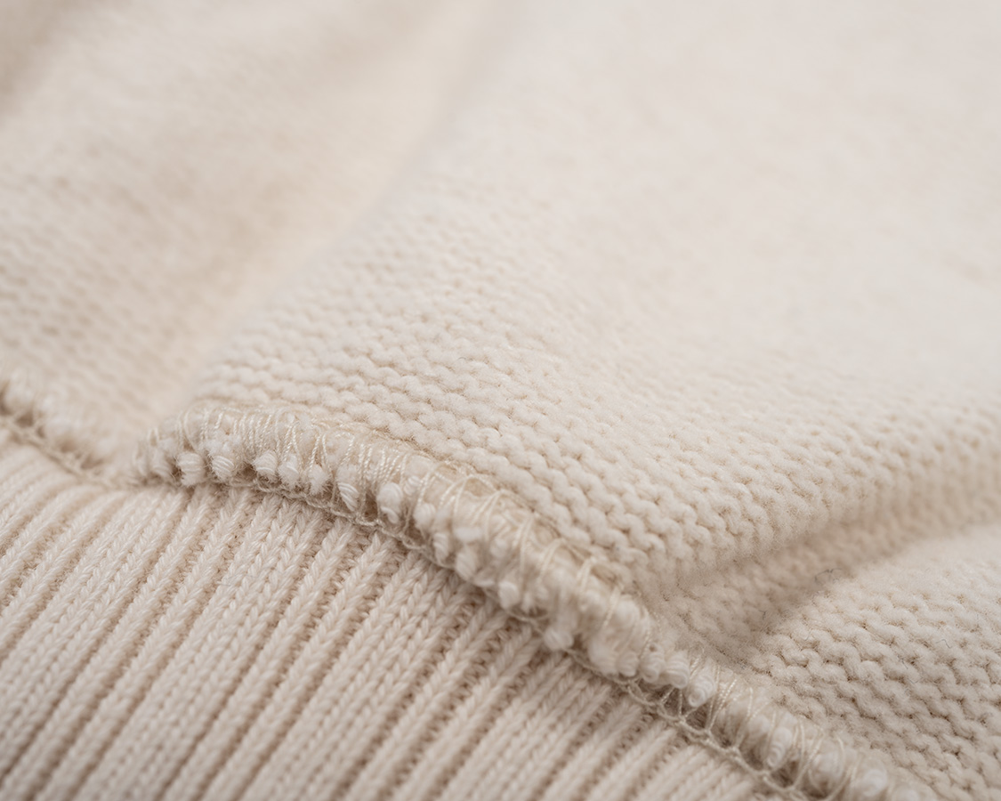 もう一枚、身頃の起毛感がわかる写真。この起毛が意外と難しい。通常、スウェットに使われる「裏毛」は起毛しますが、今回の「天竺」はあまりしない。