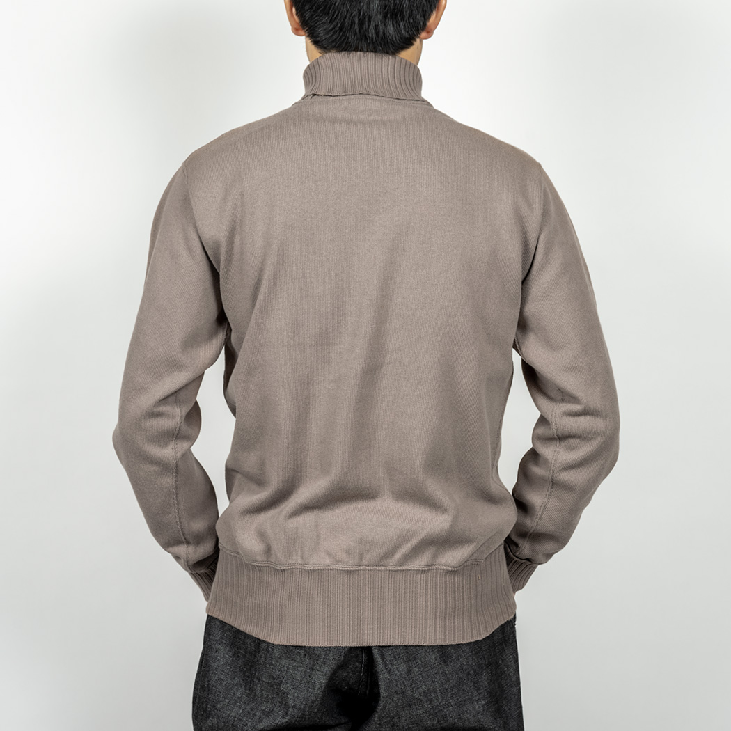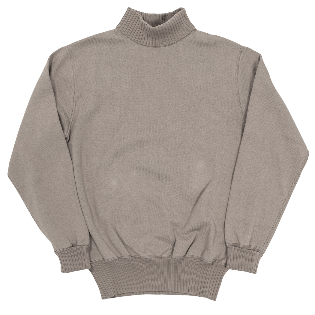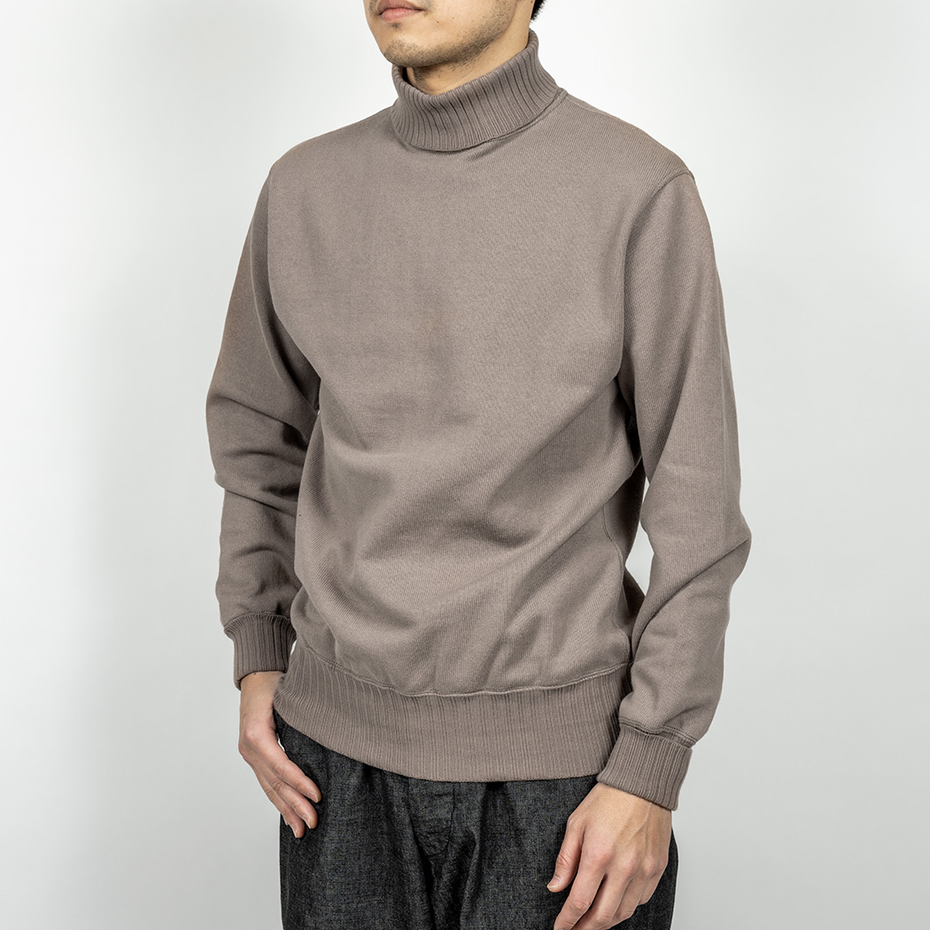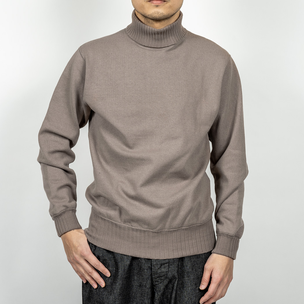 RAF Sweater、イメージは映画ダンケルグのRAF パイロットが着ていたハイネック。中はT シャツ一枚で着るとセーターの起毛面が肌に触れて気持ちいい。