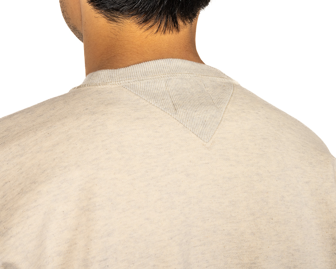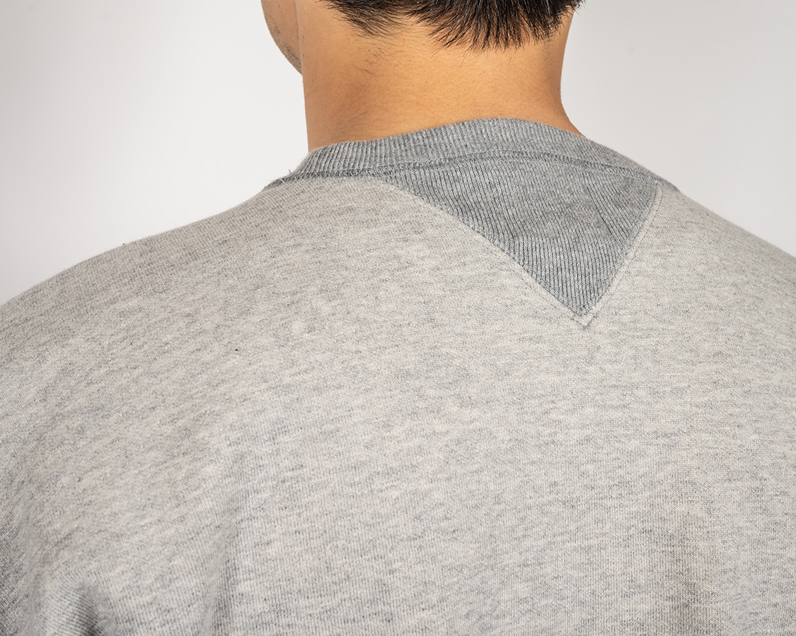 背面側のV。ここもはめ込み式、かつVは生地二重。「縫ってください」と頼んでおきながら思いますが、手間かかる仕様です。頼んでる工場さん、上手いですね、ステッチ見ても。正直、単価はかなりお高めなのですが、生地の作成から最終縫製まで、一貫で相談できる工場さんなのでここが良いのです。