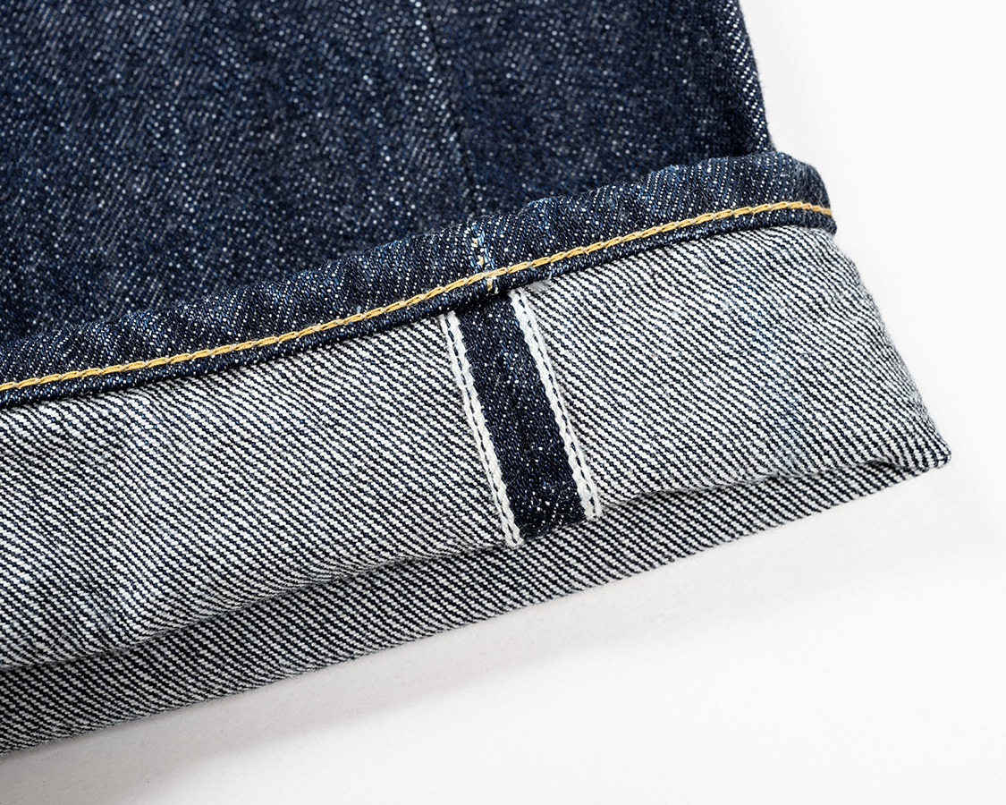 セルビッジは青耳。太くなりすぎないよう、8ミリ程度の縫い代。