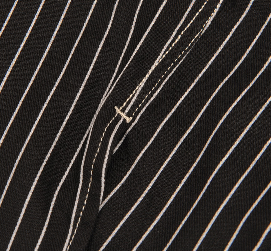 そで口はデニムジャケットのように三巻した開きです。開きどまりには、カンドメで補強がしてあります。