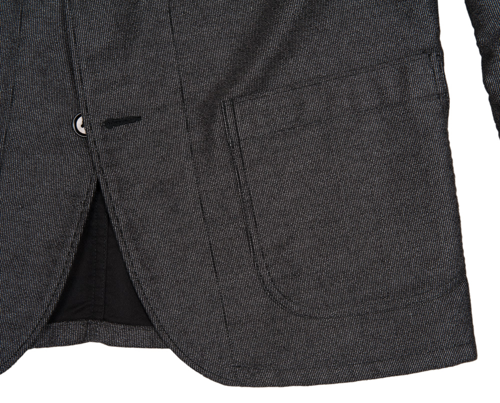 フロント裾、左右への逃げは以前のSack Coatより弱くなっています。より現代的ではありますが、何とでもコーディネートしやすいカーブを目指しました。