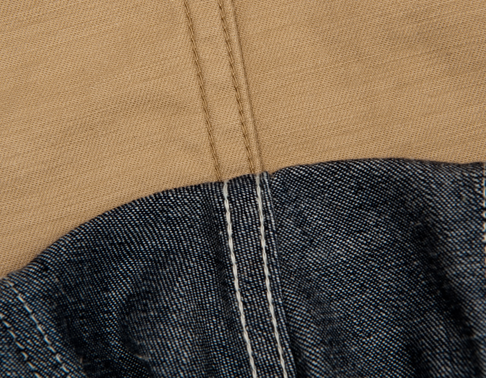 肩・後ろ中心・脇は5/16インチ、若干太めの巻き縫いです。