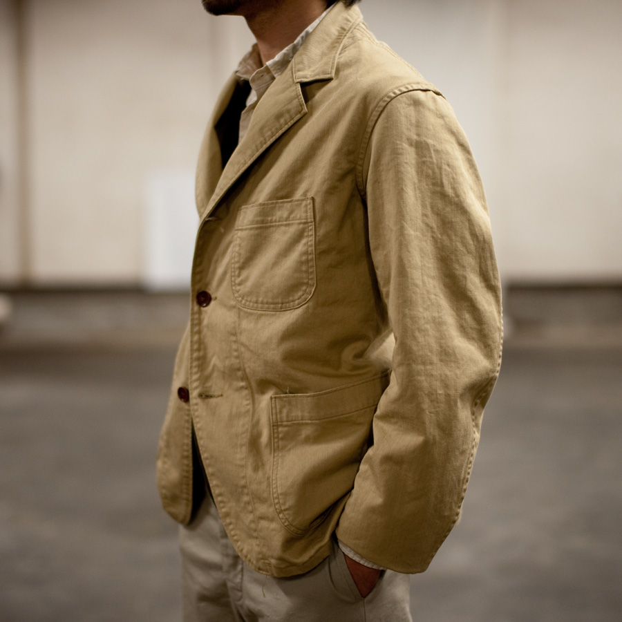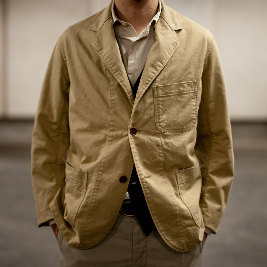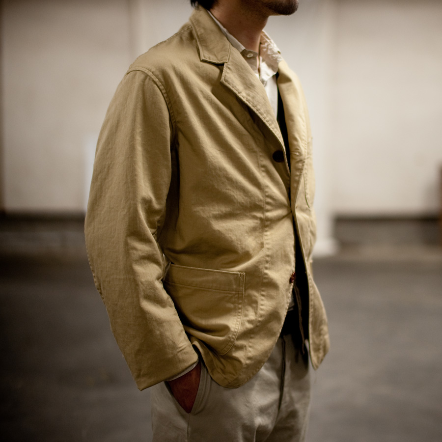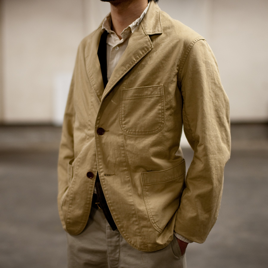 今回はトーンの違うカーキというか、ベージュに近い色のトラウザーズに合わせていますが、ブラックより、デニムよしと、何にでもよく似合うカーキです。