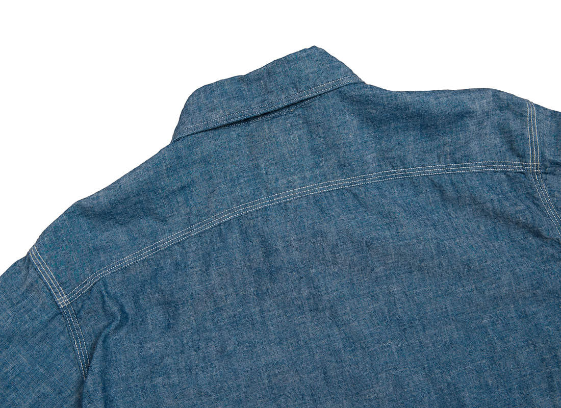 背ヨークは若干太め。これは、M-F-Gワークシャツなどの名残を考えてです。