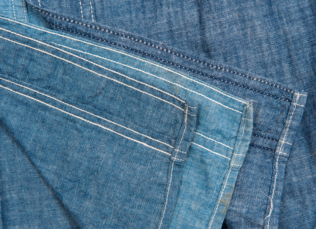 チェーンステッチ部分だけではなく、裾のシングルステッチの糸、これもより細く、細かく変更しています。