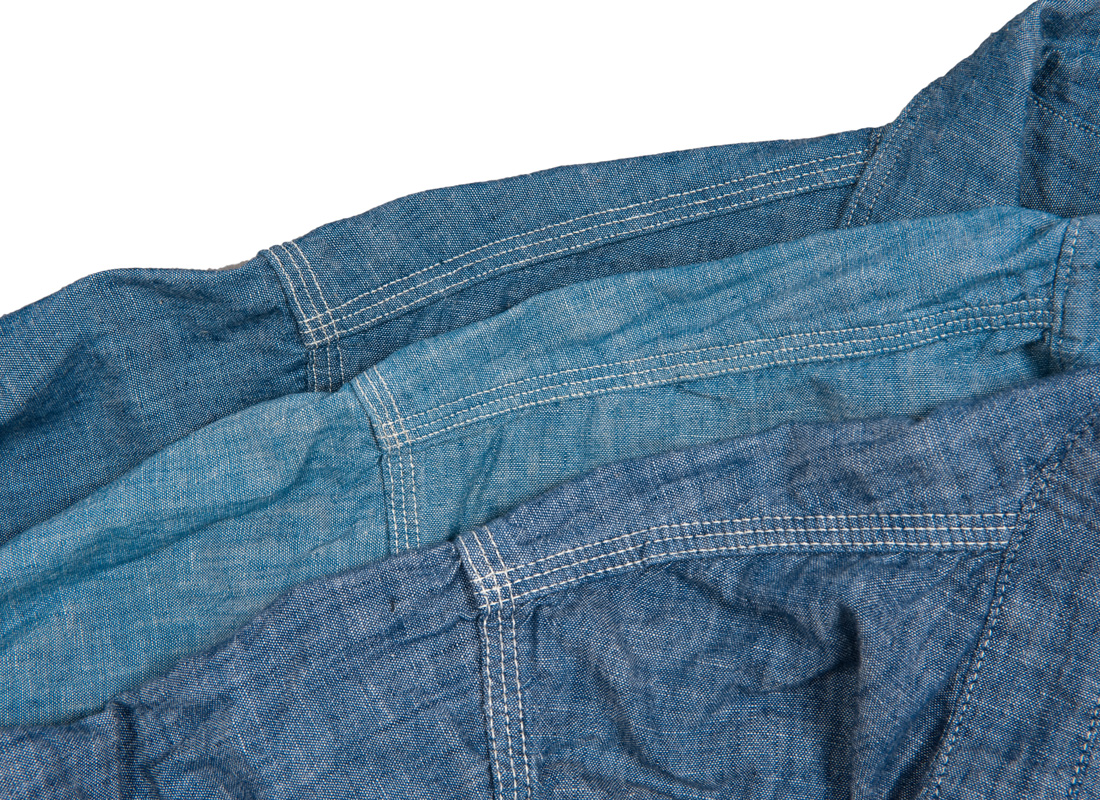 一見すると同じようなワークシャツですが、生地の色合いも含め細かな差があります。