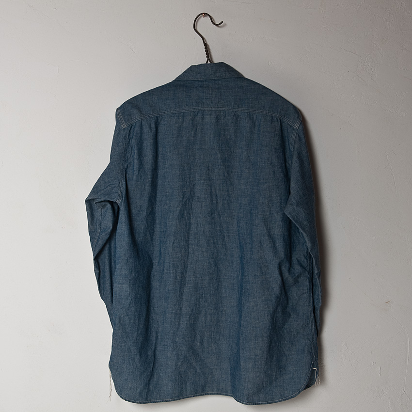 また、生地自体の細く、密な織り糸。糸の撚り(ヨリ)も今まで使ったシャンブレーよりも強いものなので、洗ってもクタらす独特のハリが残っています。