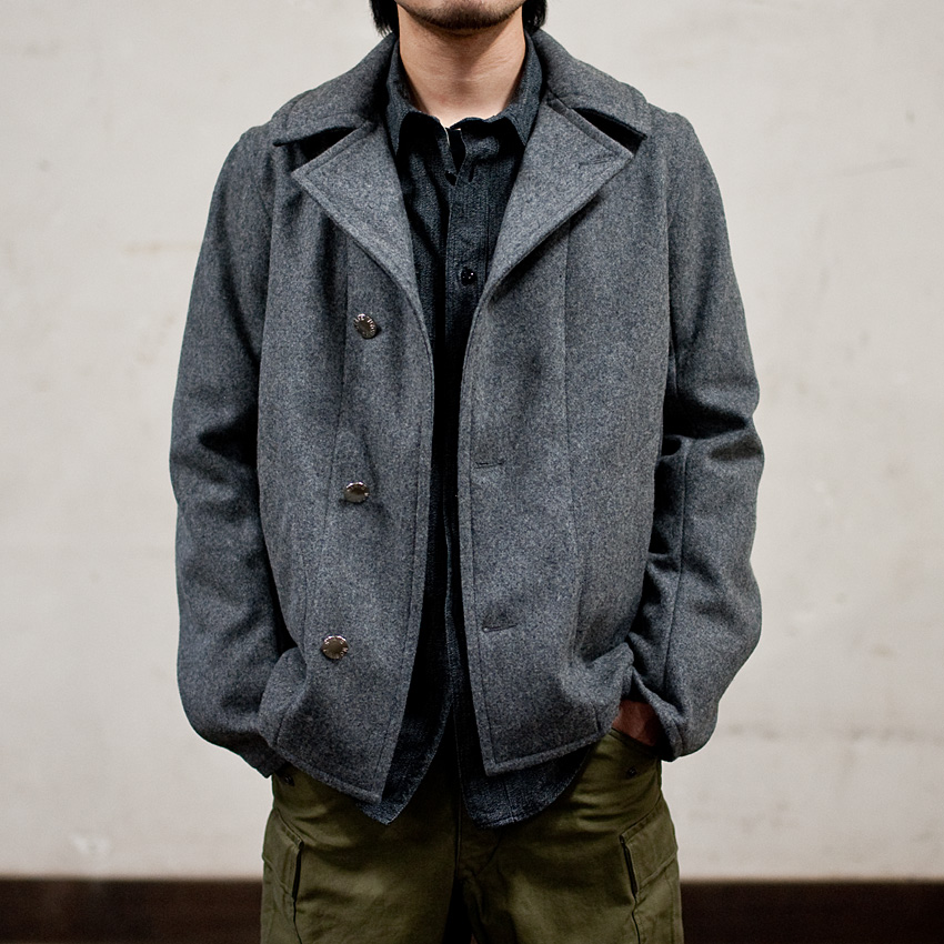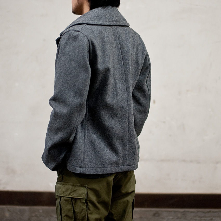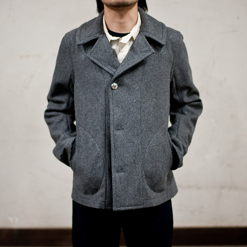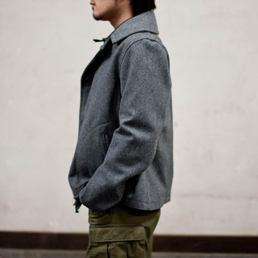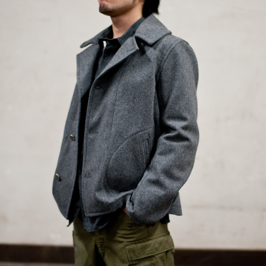 多少、皺は出るでしょうが、そんな皺があってこそのワークシャツ。軍パンとブラックコバートのワークシャツといった、ラフな組み合わせをすると、とたんにミリタリーのコートのような無骨な雰囲気に変わります。 |