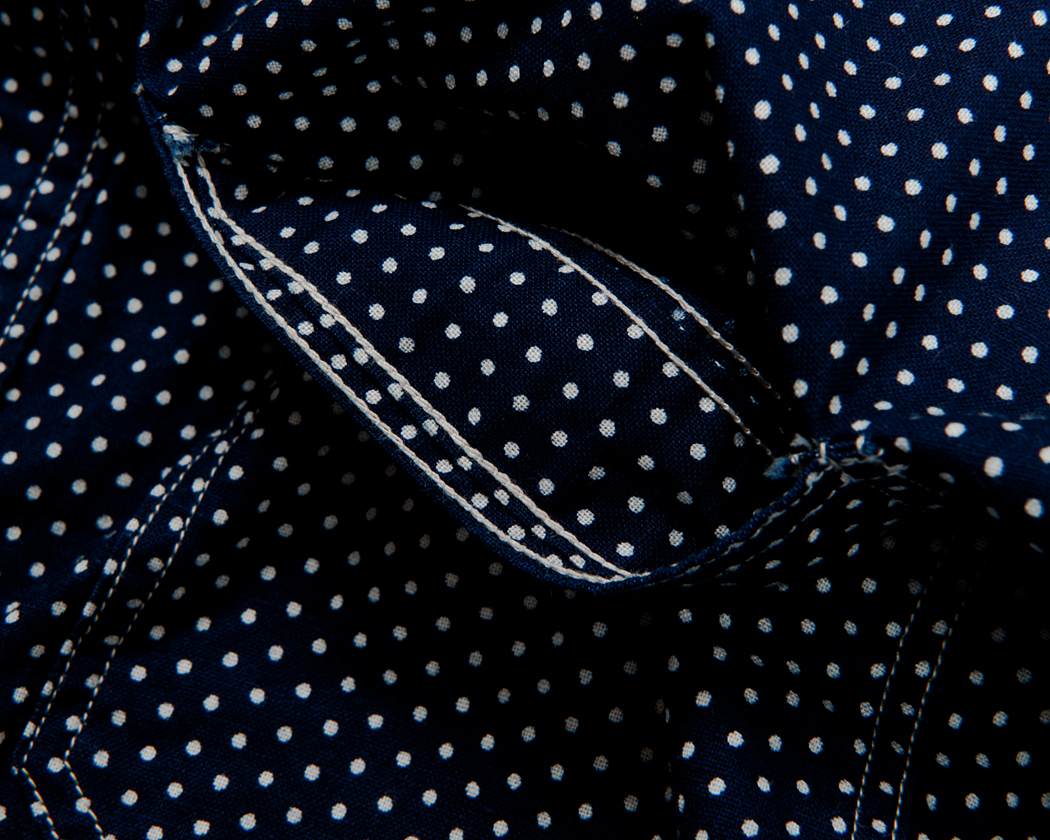 ポケットは一つ。しかし、形を6角にしてワークウェアらしさを少しだけ残しています。