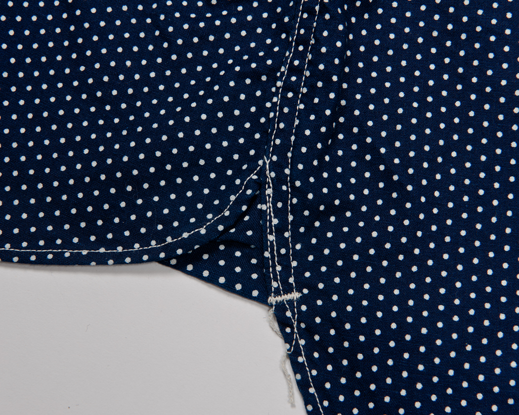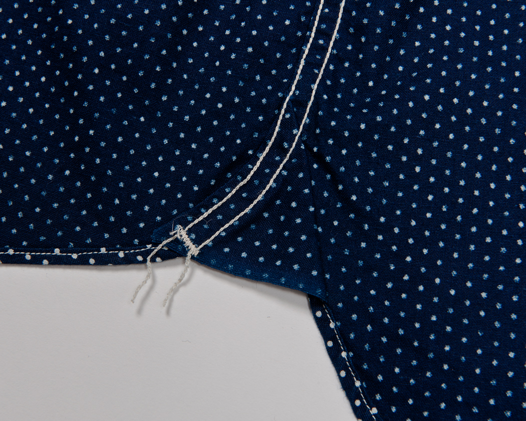 脇には耳使いのマチを。チェーンステッチの縫い終わりはカンヌキで補強しています。