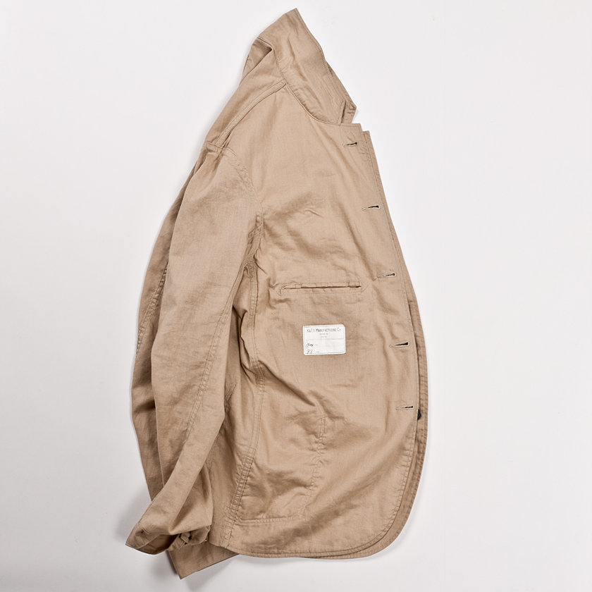 裏返すと、前身頃と同じ大きさの大見返しが。そして、見返しがついたおかげで玉ぶちの内ポケットを付ける事ができています。