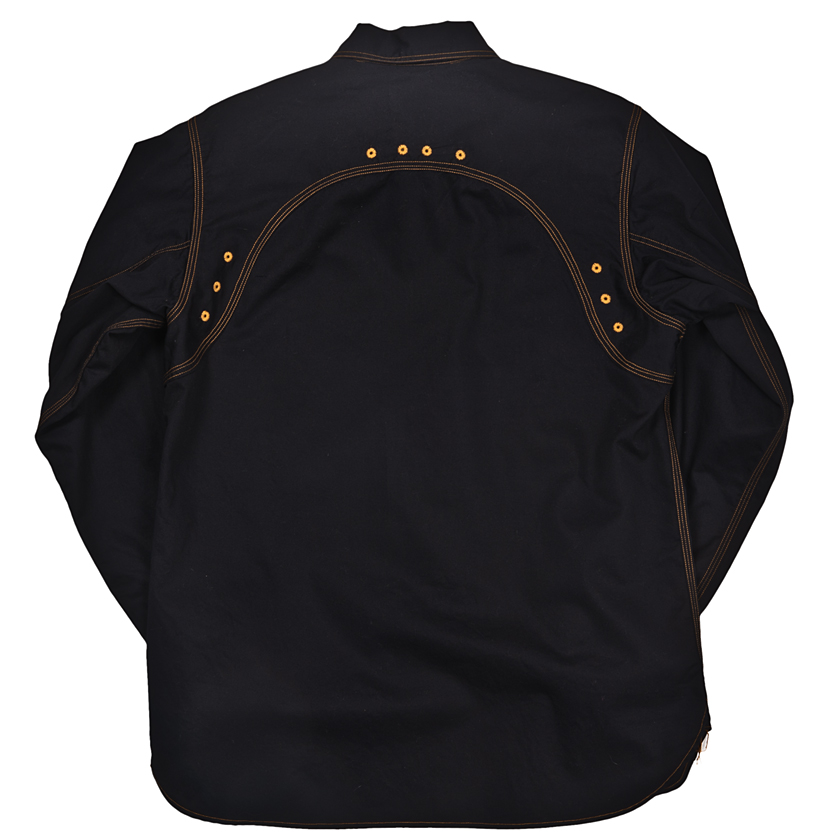 Milton F Goodmanシャツを基に、フロントをプルオーバーから通常の開きに変更しています。