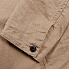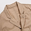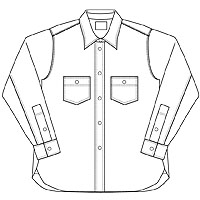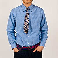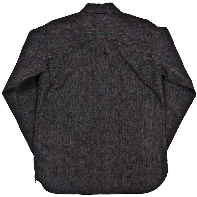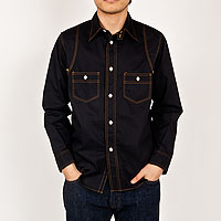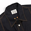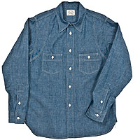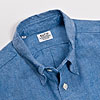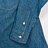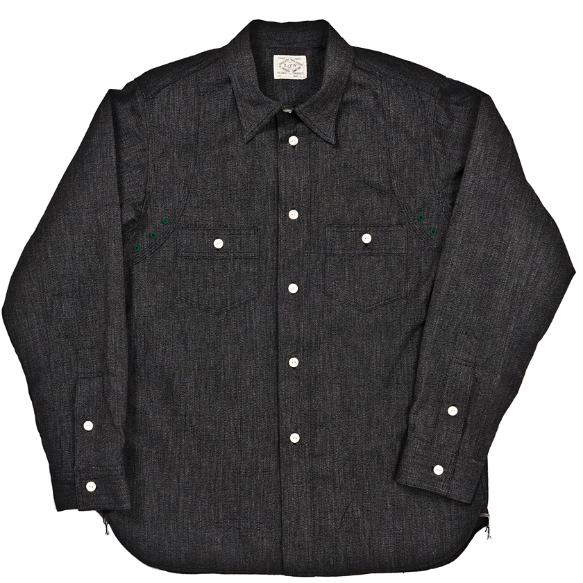 チンストラップ付きの台襟、太めの巻き縫い(1/4インチ)、やはり太めの前立て(4.2センチ幅で1/4インチステッチ)。 四角い剣ボロに2ピースの袖と、クラシカルなワークシャツの仕様を盛り込んでいます。