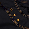 生地は、以前使っていたブラックコバート。 黒みが強く、少し地厚。ビンテージに近い風合いは良いのですが、その分品質もビンテージ風で縮率は安定しません。そのあたりも、ご了承のうえご検討ください。